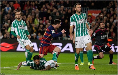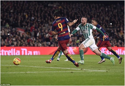 Áp đảo hoàn toàn về thế trận, Barcelona không gặp bất kỳ khó khăn nào để đánh bại Real Betis 4-0 tại Nou Camp để kết thúc năm 2015 với ngôi đầu bảng La Liga. Luis Suarez lập cú đúp, các bàn còn lại thuộc về Messi và Westermann (phản lưới nhà).