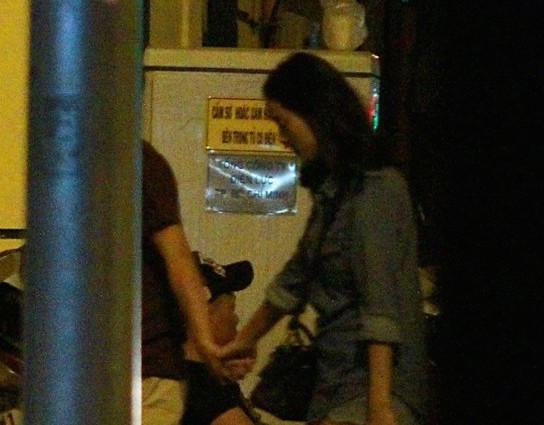 Cường Đôla tay trong tay với Hạ Vi trên phố