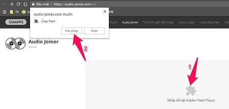 Nếu trang web yêu cầu bật Flash thì bạn nhấn vào phần Nhấp để bật Adobe Flash Player sau đó chọn Cho phép .