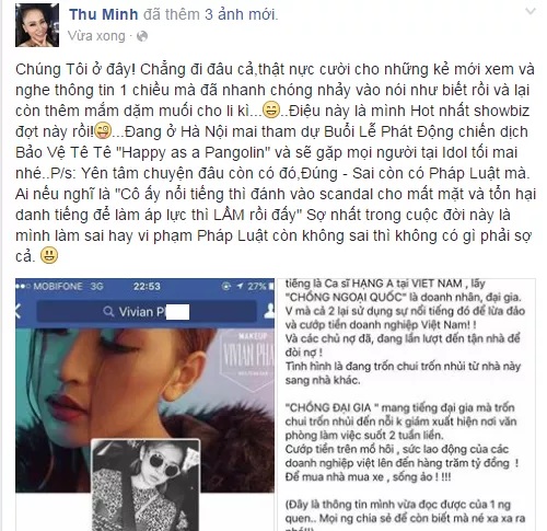 Vivian P tố cáo Thu Minh và chồng.