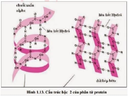 - Prôtêin bậc 1 có mạch thẳng, bậc 2 xoắn lò xo có liên kết hidrô để tăng độ vững chắc giữa các vòng.