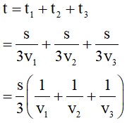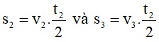 - Thời gian đi với vận tốc v2 và v3 đều là t2/2