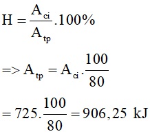 Công hao phí: A’ = Atp – Aci = 906,25 – 725 = 181,25 kJ