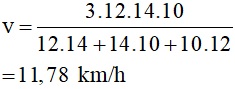 Bài 10: Một người đi xe đạp trên đoạn đường AB. Trên 1/3 đoạn đường đầu đi với vận tốc 12 km/h, 1/3 đoạn đường tiếp theo đi với vận tốc 14 km/h và 1/3 đoạn đường cuối cùng đi với vận tốc 10 km/h. Tính vận tốc trung bình của người đi xe đạp trên cả đoạn đường AB.