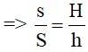 - Xem chất lỏng không chịu nén thì thể tích chất lỏng chuyển từ xilanh nhỏ sang xilanh lớn là V = h.s = H.S
