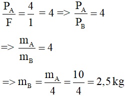 - Tác dụng lên vật A có trọng lượng PA và lực kéo F của sợi dây có độ lớn bằng trọng lượng PB của vật B.
