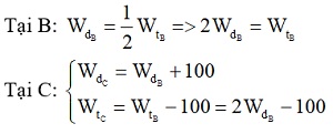 Bài 8: Một vật rơi từ vị trí A xuống mặt đất. Bỏ qua sức cản không khí. Khi vật rơi đến vị trí B thì động năng của vật bằng 1/2 thế năng của nó. Động năng của vật tiếp tục tăng thêm một lượng là 100 J thì có giá trị bằng thế năng. Thế năng của vật ở vị trí A là: