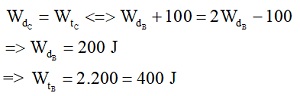 Cơ năng của vật tại B: WB = WdB + WtB = 200 + 400 = 600 (J)