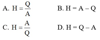 Biểu thức xác định hiệu suất của động cơ nhiệt: H = A/Q ⇒