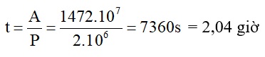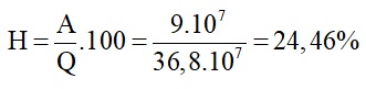 ⇒ Công có ích của động cơ: A = H.Q = 0,25.6,44.107 = 1,61.107 J