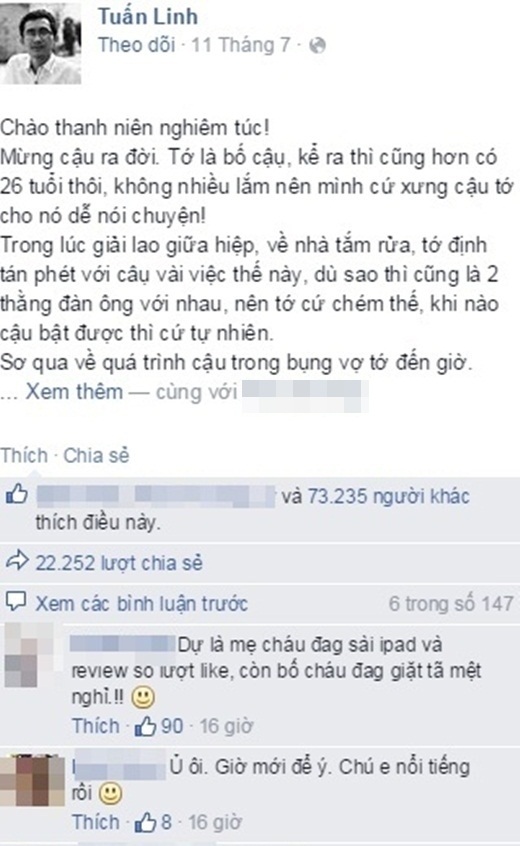 Bức thư của anh chàng chia sẻ trên trang cá nhân nhanh chóng nhận được sự quan tâm của mọi người. Từ ngày 11/7 tới nay, bài viết của Tuấn Linh đã nhận được hơn 73.000 lượt yêu thích, 22.000 lượt chia sẻ cùng hàng trăm lượt bình luận, chúc mừng của bạn bè, người thân cũng như cư dân mạng.