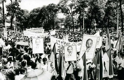 Các tầng lớp nhân dân Sài Gòn tham dự mít tinh mừng chiến thắng (Ảnh tư liệu).
