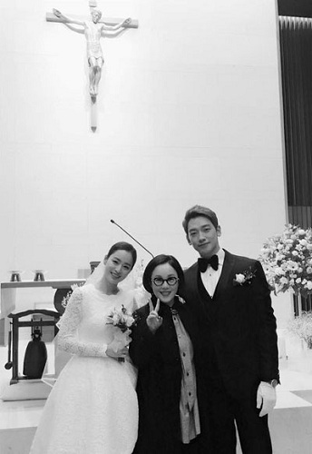 Vợ chồng Kim Tae Hee - Bi Rain chụp ảnh cùng chuyên gia trang điểm nổi tiếng Jung Saem Mool. Theo Drama Fever, tổng chi phí cho lễ cưới là 1.100 USD (hơn 24 triệu đồng), bao gồm tiền thuê địa điểm, hoa cưới, trang trí tiệc... Phí này chưa tính váy cưới, vest và nhẫn cưới của vợ chồng sao. Đây được đánh giá là một trong những đám cưới tiết kiệm nhất của showbiz Hàn Quốc. Trước hôn lễ, Bi Rain gửi thư tới người hâm mộ nói vợ chồng anh sẽ tiết kiệm trong bối cảnh kinh tế Hàn Quốc đang khó khăn.