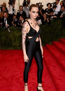 Cô nàng tom boy Cara Delevingne vốn được đánh giá cao về gu thời trang, tuy nhiên phong cách của cô tại Met Gala 2015 lại gây cho người hâm mộ sự thất vọng vô cùng lớn. Thiết kế iumpsuit hiệu Stella McCartney không chỉ tương tự bộ đồ cô mặc ở sự kiện này năm ngoái mà còn “dìm hàng” chủ nhân, che đi điểm mạnh là đôi chân dài thon thả.