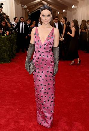Đôi găng tay da màu tối già dặn và hoàn toàn không ăn nhập đã phá hỏng chiếc váy xẻ sâu quyến rũ của mỹ nhân In Time - Olivia Wilde.