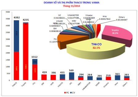 Doanh số ô tô tháng 11/2014 Lại là Thaco