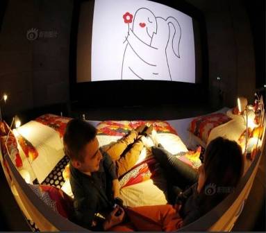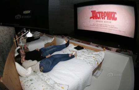 Mới đây, một dự án vừa được triển khai tại một rạp phim cổ của thủ đô Mátxcơva, Nga nhằm đem lại cho những người xem phim không gian thoải mái nhất có thể. Dự án mang tên “Đánh thức tình yêu” (Wake up! Love) đã loại bỏ toàn bộ những chiếc ghế ngồi truyền thống của rạp phim tại vùng ngoại ô Mátxcơva và thay thế chúng bằng những chiếc giường rộng rãi và siêu êm ái.