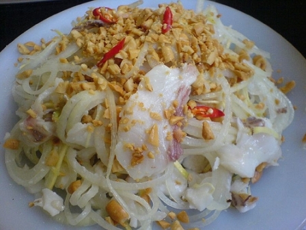 Một món ăn đặc sắc đã hút hồn thực khách đó là gỏi cá mập. Vị mềm, thơm của thịt cá tươi kết hợp cùng với gia vị tự nhiên của lá mơ, ngổ, chuối xanh, dứa, khế… chấm cùng bát “phỗng” cay cay, chua chua… làm nên nét đặc sắc cho món gỏi cá mập Côn Đảo.