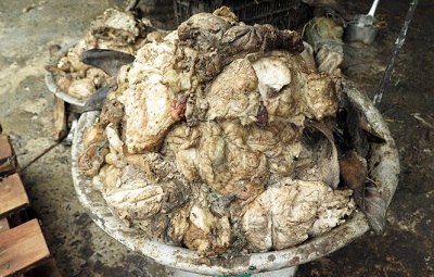 Xương trâu, bò, lợn được chiên cùng mỡ - Ảnh: QUANG THẾ