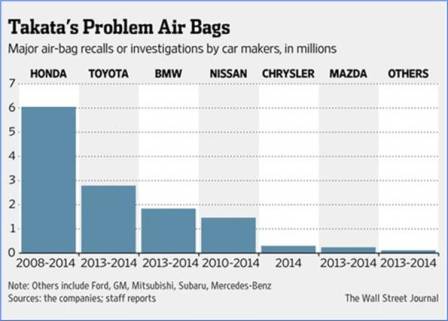Honda là nhà sản xuất xe bị ảnh hưởng nhiều nhất bởi túi khí lỗi của Takata. Hãng đã phải thu hồi hơn 6 triệu xe vì sơ suất của nhà cung cấp túi khí này. Tính đến nay đã có hơn 17 triệu xe trên toàn cầu bị thu hồi vì lỗi túi khí của Takata, 11 triệu trong số đó đến từ thị trường Mỹ.