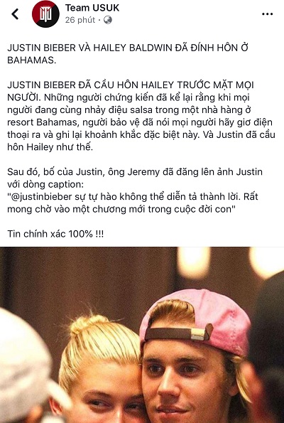 Trước đó cặp đôi Justin Bieber và Hailey Baldwin từng công khai mối quan hệ của mình rộng khắp trên Instagram vào năm 2015 nhưng đã chia tay. Vào đầu năm 2018 cặp đôi quay lại với nhau vào ngày trước đó cặp đôi đã dành cho nhau những cử chỉ ngọt ngào, lãng mạn tại Brooklyn. Nhưng có lẽ màn cầu hôn này là một điều bất ngờ rất lớn đối với các fan hâm mộ của cặp đôi này trên thế giới.