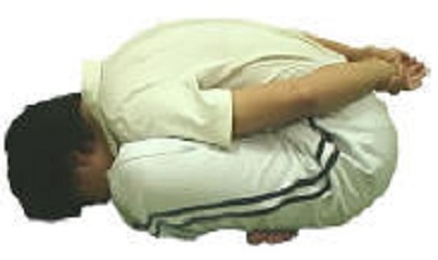 - Nâng người lên khi thở ra, và từ từ cúi người xuống đến lúc đặt sát mặt vào giữa hai đầu gối.