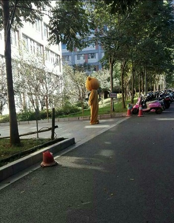 Cụ thể, tại tiền sảnh của ký túc xá nữ thuộc trường Đại học Sư phạm Vân Nam, Trung Quốc, một nam sinh mặc đồ gấu bông, tay cầm thư tỏ tình và sô cô la đứng chờ suốt 7 tiếng để gặp người trong mộng nói lời tỏ tình nhưng bị cho leo cây rất tội nghiệp.