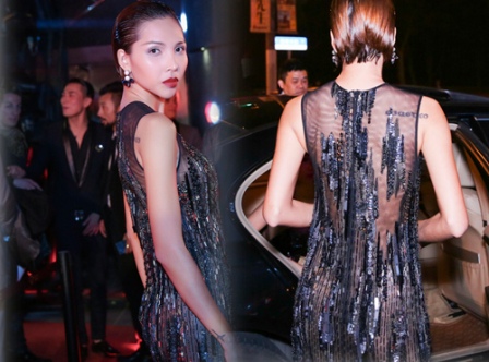 Mới đây, khi tham dự sự kiện của kênh truyền hình Fashion TV ở Thượng Hải trong vai trò đại diện FTV Việt Nam, người mẫu Minh Triệu cũng chọn phong cách sexy với váy đính hạt từ chất liệu xuyên thấu, ẩn hiện những hình xăm.