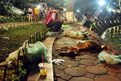 Cảnh tượng đáng buồn của Hồ Gươm vào tối 30/4 vừa qua.