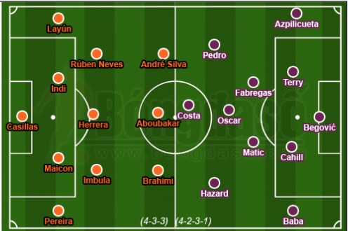 Thử thách của Jose Mourinho là Porto, sẽ không “mềm” như Maccabi Tel Aviv ở loạt trận mở màn. Thay vào đó, đội bóng Bồ Đào Nha đủ sức mạnh để khai thác triệt để tử huyệt của Chelsea (ở bên hàng lang cánh phải).