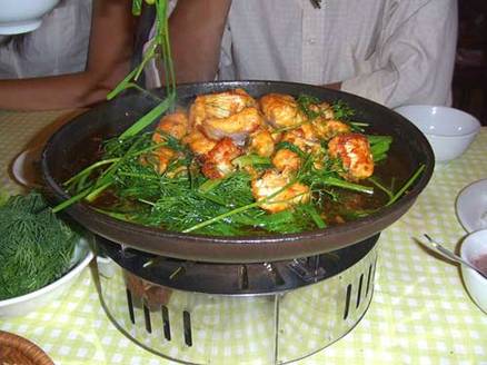 Đấy là quán gốc, nơi đã sáng tạo ra món này và đã truyền 4 đời. Ở đây có cả khách ta và khách tây. Công thức chế biến là cá chiên, cá quả, cá lăng, cá Hồng sau khi đã được tẩm ướp hạt tiêu gia vị theo bí quyết của nhà hàng, cá sẽ được chiên với những cọng hành xanh mướt, ăn nóng hổi với bún, rau sống, húng láng, chấm mắm tôm.