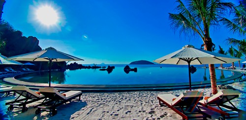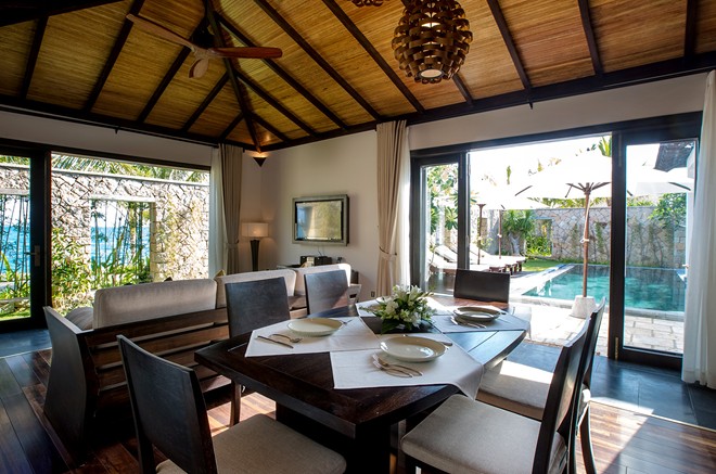 Bể bơi xanh biếc giữa màu xanh của cây cối đem lại cho khách cảm giác thư thái.