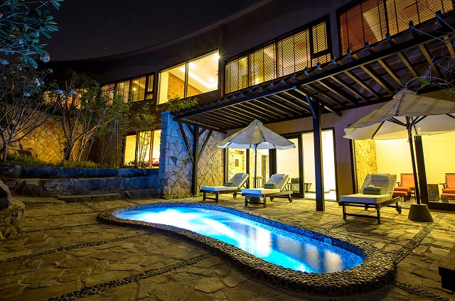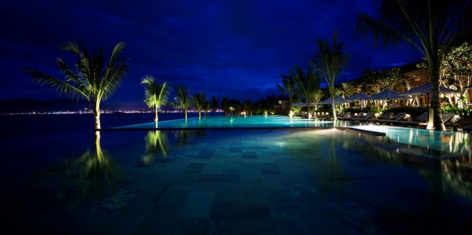 Khu nghỉ dưỡng về đêm lộng lẫy dưới ánh đèn, đem lại bầu không khí lãng mạn và dịu dàng cho các cặp đôi.