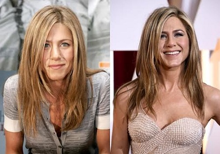 Cuối năm 2014, Jennifer Aniston gây thất vọng với nhan sắc tầm thường, khuôn mặt nhàu nhĩ và nếp nhăn nổi chằng chịt trên trán. Nhưng chỉ sau đó vài ngày ngôi sao 46 tuổi xuất hiện vô cùng lộng lẫy với làn da sáng và căng mướt vô cùng nổi bật, “lấn át” cả dàn sao trẻ.