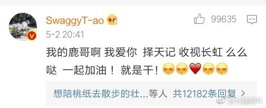 Tuy nhiên, cách đây chỉ vài giờ, Luhan khiến dân tình vô cùng bất ngờ khi đăng ảnh và dòng chúc mừng sinh nhật tới Tao. Luhan viết: "Chúc @SwaggyT-ao sinh nhật vui vẻ! Hy vọng concert sắp tới của cậu thành công tốt đẹp! Kakaka, haha!"