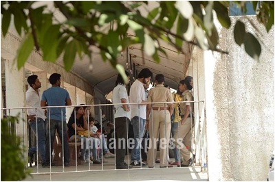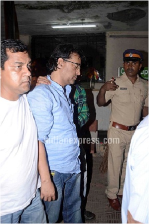 Nam diễn viên Shashank Vyas (áo trắng) đứng bên cạnh cảnh sát trước giờ đón di thể của Pratyusha Banerjee. Chàng Jagdish của Cô dâu 8 tuổi đau đớn khi nghe tin “Anandi” qua đời.