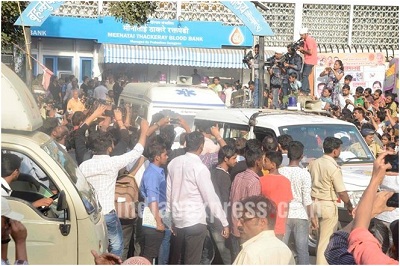 Xe đưa thi thể của nữ diễn viên Cô dâu 8 tuổi đi hỏa táng, người hâm mộ nữ diễn viên giơ tay gửi lời chào tiễn biệt cô lần cuối.