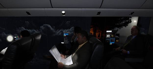Công ty này muốn thay thế hệ thống cửa sổ thông thường trên máy bay chở khách hiện nay bằng các màn hình cảm ứng OLED chạy dọc suốt toàn bộ chiều dài máy bay. Qua màn hình này, hành khách bên trong có thể nhìn thấy khung cảnh bên ngoài nhờ các máy quay đặt trên thân máy bay.