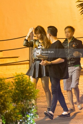 Hari Won vừa biểu diễn xong ở một phòng trà khác...
