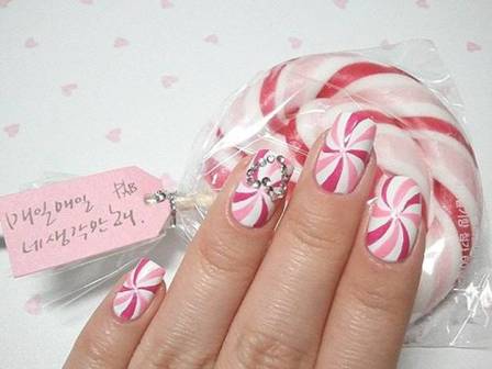 Vẽ móng họa tiết kẹo gậy và kẹo bạc hà cực đơn giản.