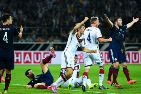 Scotland hành quân đến Dortmund, thi đấu một trận ngoan cường khiến Đức toát mồ hôi mới có thể giành thắng lợi trong trận đầu tiên ở vòng loại Euro. Thomas Muller mở tỷ số ở phút 18 nhưng đến phút 66, Scotland đã có bàn gỡ hòa do công của Ikechi Anya. Chỉ bốn phút sau đó, tiền đạo của Bayern Munich hoàn thành cú đúp, ấn định chiến thắng 2-1 cho "cỗ xe tăng".