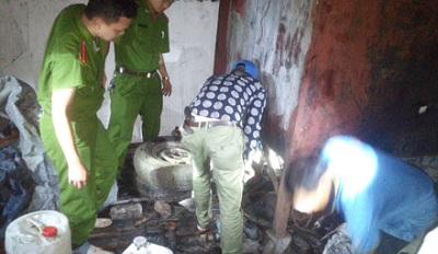 Tiến hành kiểm tra nhà Nguyễn Văn Thái, lực lượng công an phát hiện hai bể chứa lớn, trong đó có một bể chứa khoảng 6.000 lít dầu bẩn, 6 thùng phuy cũng chứa đầy loại dầu này cùng nhiều nhiều can nhựa dùng để đựng.