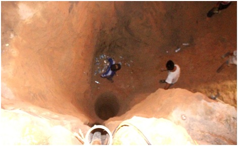 Anh Phương cho biết “Vị trí con bé bị kẹt cách mặt đất khoảng 13m, do có một hòn đá trồi ra làm hẹp lại lỗ ở giếng khoan nên bé gái này mới không bị rơi xuống tiếp”.