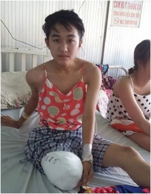 Nữ sinh Vi bị cắt chân tại bệnh viện - Ảnh gia đình cung cấp