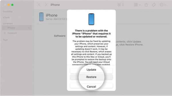 Bước 4: Thả nút đang giữ trên iPhone. Chọn iPhone trong phần Finder (trên máy Mac) hoặc iTunes (trên máy Windows).