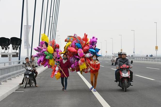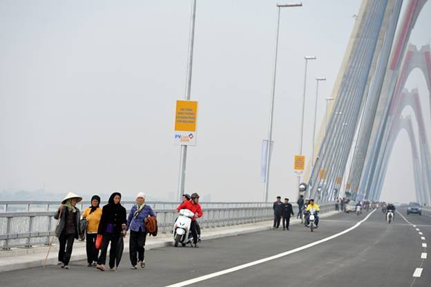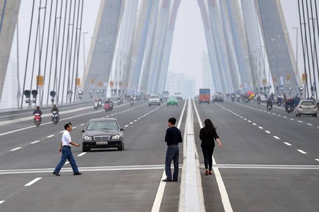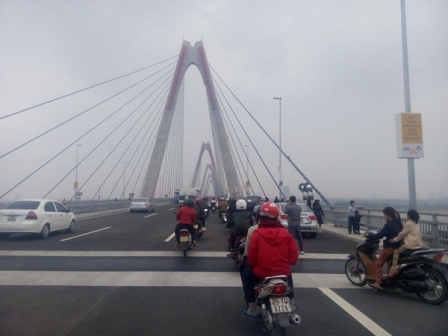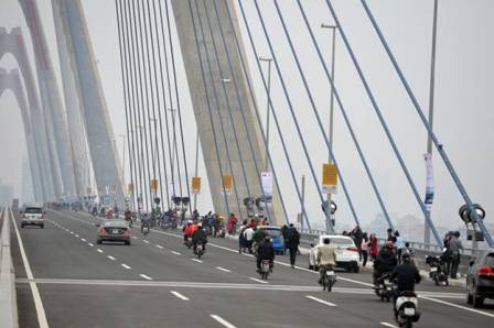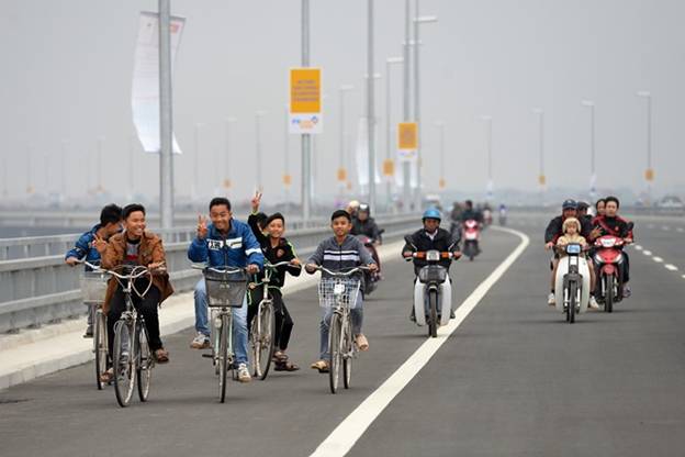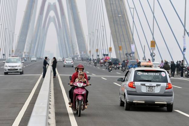Các phương tiện đi lại qua cầu Nhật Tân