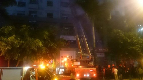 Lực lượng chức năng khi nhận được tin báo đã điều cảnh sát PCCC và 4 xe cứu hỏa xuống hiện trường dập lửa, cũng như cứu hộ những người còn mắc kẹt trên các tầng.