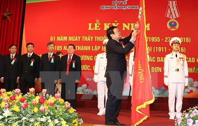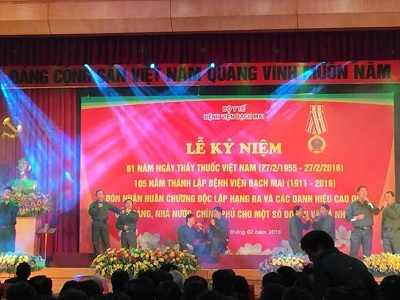 Sau 105 năm thành lập (1911-1945), với những đóng góp lớn lao của tập thể các bác sĩ BV Bạch Mai trong việc cứu chữa cho người bệnh, Chủ tịch nước đã trân trọng trao tặng Huân chương Độc lập, Huân chương Lao Động hạng 3 cho Bệnh viện Bạch Mai. Đặc biệt, danh hiệu Anh hùng Lao Động đã được trao cho PGS TS Nguyễn Quốc Anh giám đốc BV Bạch Mai và GS TS Nguyễn Lân Dũng giám đốc BV Tim Mạch.
