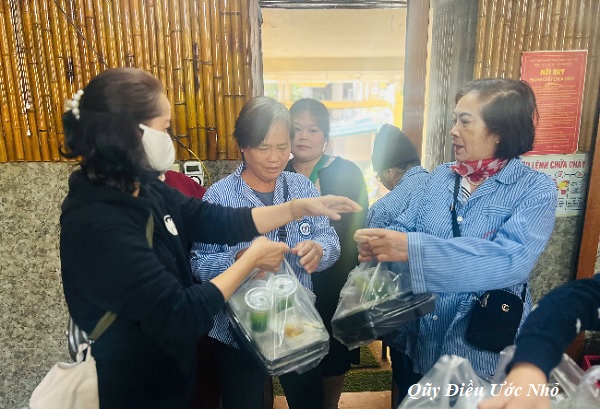 Thời gian trôi qua rất nhanh, đồng hồ đã điểm gần 12h, 100 xuất cơm đã được phát trực tiếp hoặc chuyển đến người bệnh. Ai cũng hoan hỉ đón nhận, niềm vui giản dị nhưng ấm tình nghĩa cộng đồng, giúp người bệnh quên đi những lo lắng phiền muộn vì tật bệnh. Đâu đó vang lên tiếng cười rộn rã, xoá tan bầu không khí ngột ngạt đông đúc. Giõi theo các bác, cô chú trở về phòng bệnh, chúng tôi Quỹ DUN thầm chúc các bác, cô chú luôn vững vàng vượt lên mọi nghịch cảnh để cuộc đời luôn vui, khoẻ. Quỹ DUN luôn chung tay đồng hành cùng người bệnh.