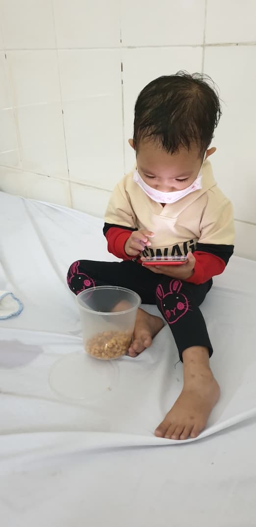 Có những em mới 5 tuổi mà đã mổ đến lần thứ 3. Có bé ở viện như ở nhà vô tư thoải mái ngồi chơi điện tử trong lúc chờ đợt thay áo mới.